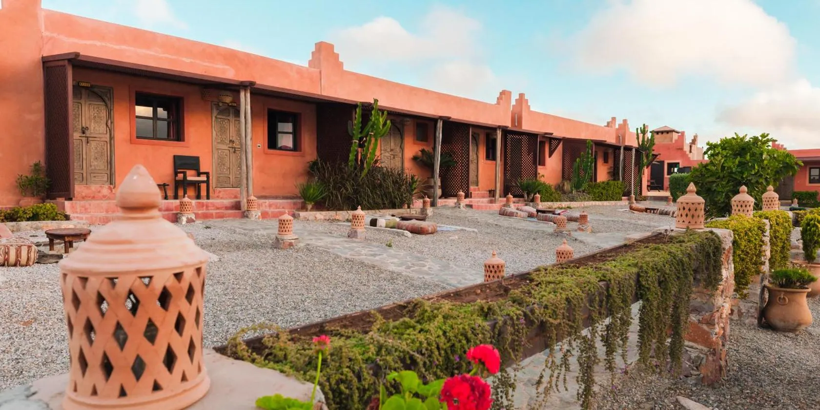 Perched atop a cliff overlooking the beach and Atlantic Ocean, Kasbah Tabelkoukt is an ideal base for exploring Morocco’s coastline. Each room has a different theme.