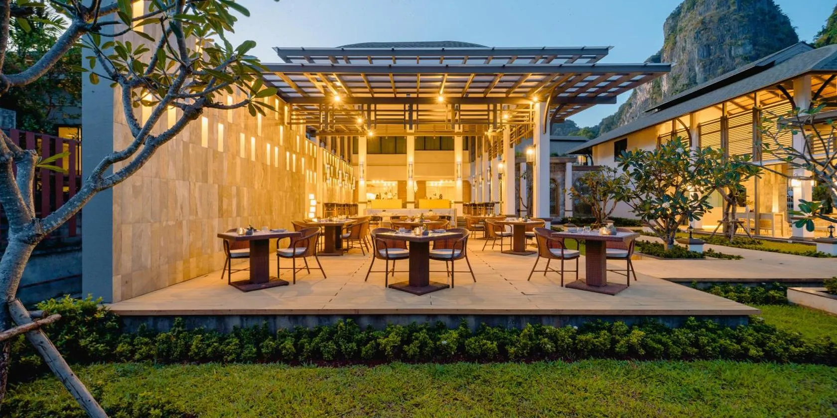 Set against the stunning backdrop of Ao Nang’s iconic cliffs, The Vatika Resort and Spa offers charming Thai-style bungalows surrounded by lush tropical greenery.