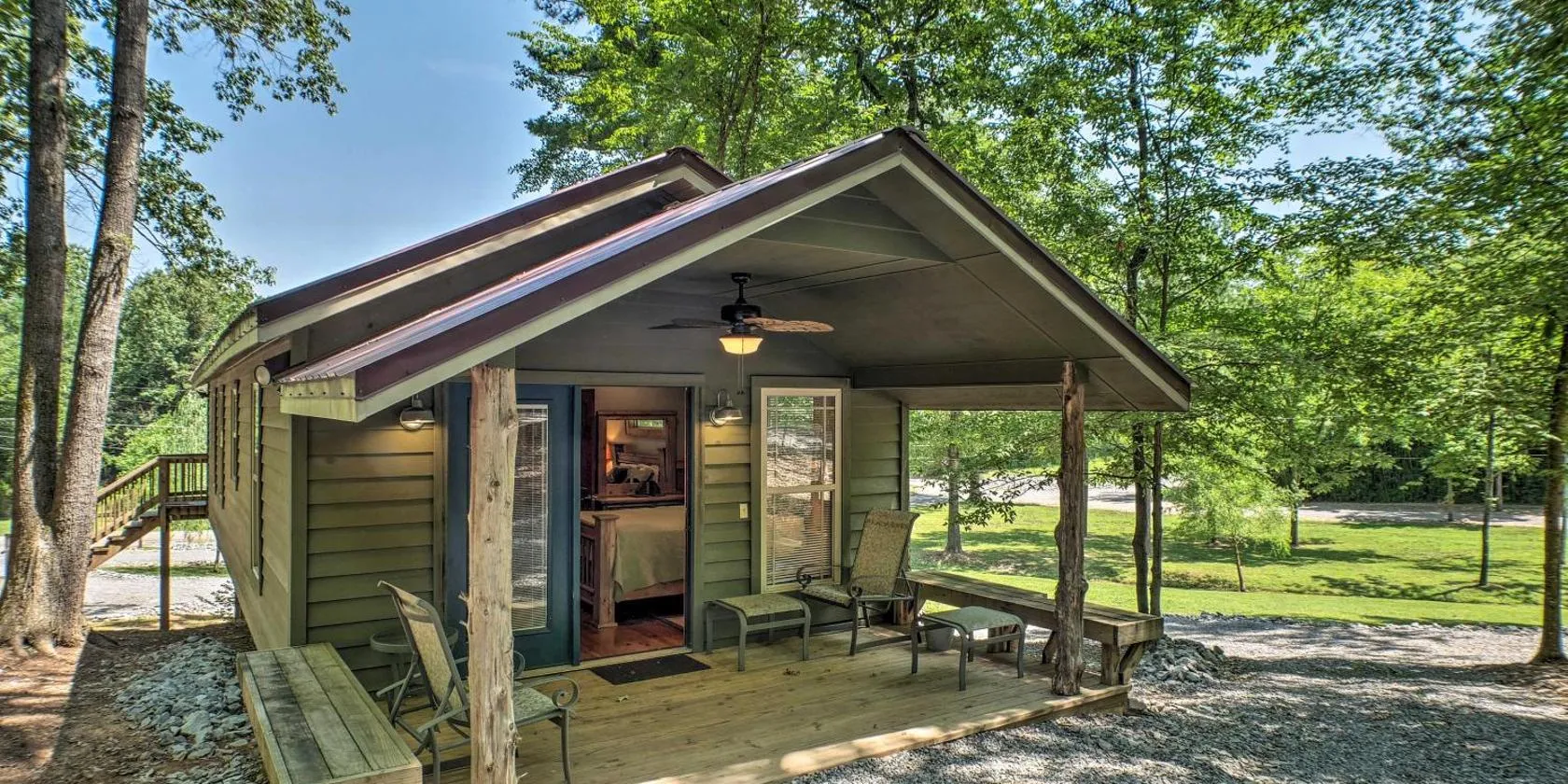 Boasting air-conditioned accommodation with a patio, Glamping cabin with private deck and hot tub! is situated in Guntersville. This holiday home has a garden.