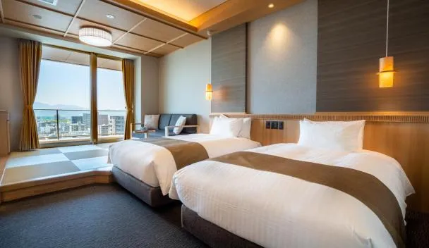 Only a 1-minute walk from the famous Dogo Onsen, Hotel Patio Dogo offers modern accommodations with free Wi-Fi.
