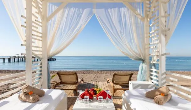 Το all inclusive Kaya Palazzo Golf Resort βρίσκεται μπροστά στην παραλία, προσφέροντας ιδιωτική παραλία μήκους 200μ. με δωρεάν ομπρέλες και ξαπλώστρες.