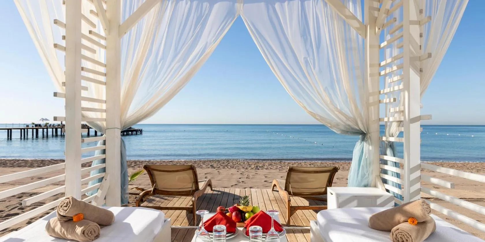 Situated on the beachfront, all-inclusive Kaya Palazzo Golf Resort has a 200-metre-long private beach offering free parasols and sun loungers.
