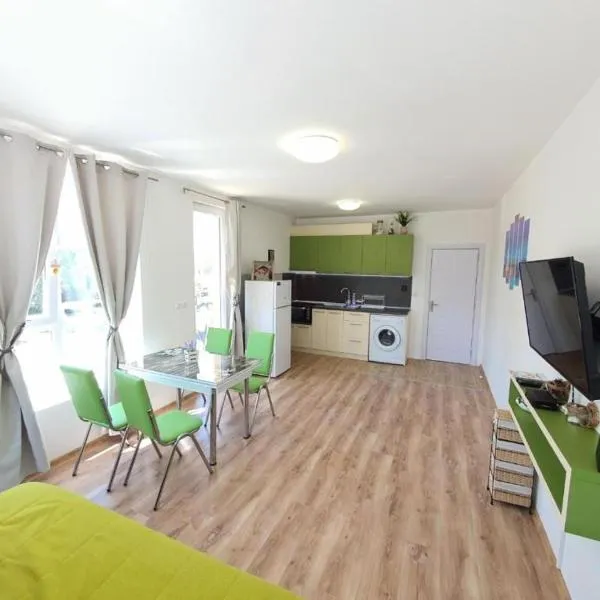 Το The Green Paradise Apartments διαθέτει καταλύματα με εστιατόριο, εποχική εξωτερική πισίνα, κήπο και βεράντα, ενώ το σημείο ενδιαφέροντος Παραλία Primorsko απέχει 900μ.