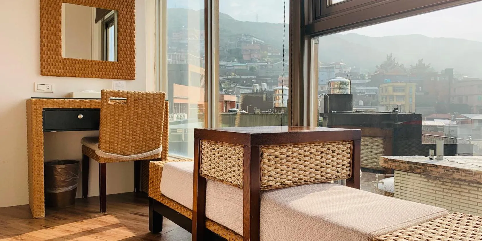 Το 山茶雅舍 新北市民宿證號360號 προσφέρει δωρεάν WiFi, κλιματισμό και βεράντα στο Jiufen.