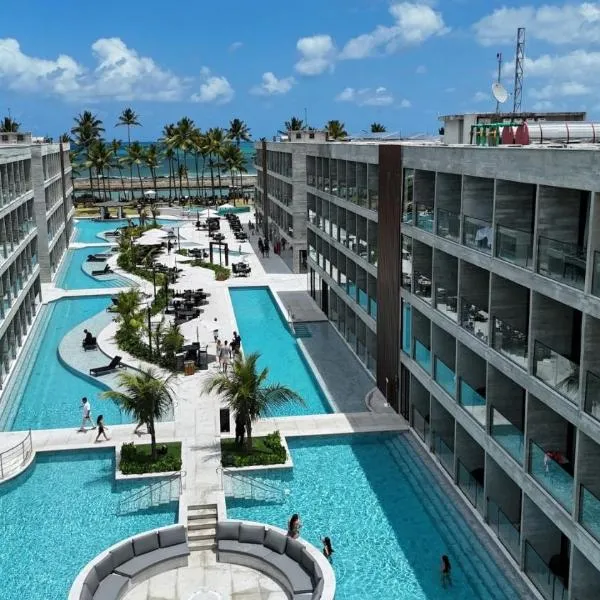 يتميز مكان إقامة "Muro Alto -Flat - Porto de Galinhas Beira mar" بإطلالة على البحر ويقع في بورتو دي غالينهاس، كما يشتمل على مطعم، وصالة مشتركة، وبار، وحديقة، ومسبح خارجي، وتراس.