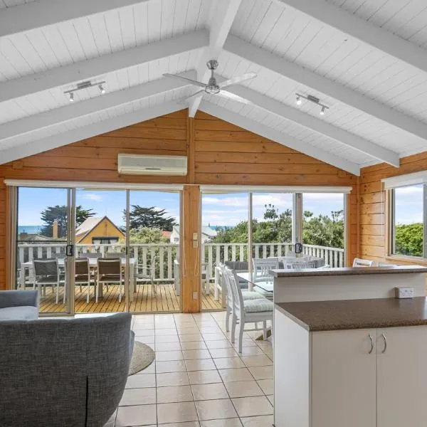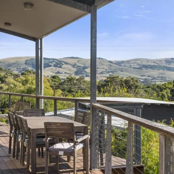 Το Ocean View Treetops Retreat διαθέτει δωρεάν WiFi, κλιματισμό, κήπο και βεράντα. Είναι σε Apollo Bay και απέχει 500μ από Παραλία Skenes Creek Beach και 48 χλμ από Καταρράκτες Erskine.