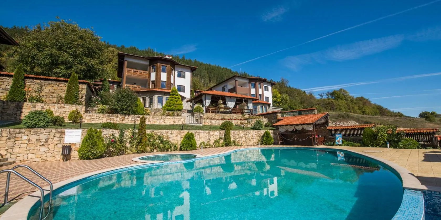 Το Висок клас къща за гости Кътче от Рая с басейн, джакузи и спа, το οποίο είναι σε Maryan, προσφέρει βεράντα με θέα στο βουνό και στον κήπο, καθώς και εξωτερική πισίνα, σάουνα και υδρομασάζ.