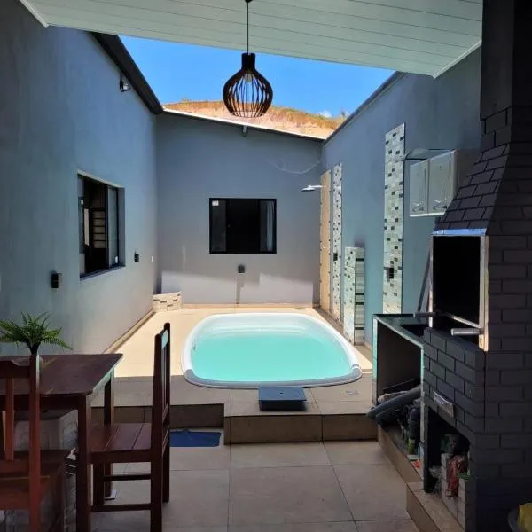 Το Casa recém construída + piscina, próxima da praia έχει θέα στην πισίνα και παρέχει εξωτερική πισίνα, κήπο και βεράντα. Το σημείο ενδιαφέροντος Παραλία Praia do Boqueirao είναι περίπου 10μ μακριά.