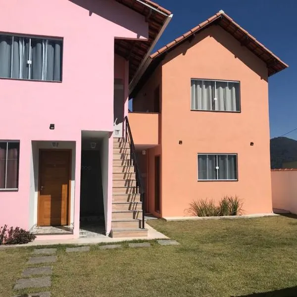 Το Linda casa no centro de Penedo, το οποίο είναι σε Itatiaia, έχει κήπο, εξωτερική πισίνα και θέα στο βουνό.