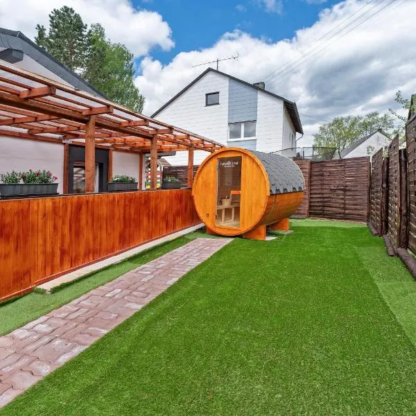 Το Moseljuwel mit exklusiver Sauna und Indoor Pool βρίσκεται σε Traben-Trarbach και παρέχει δωρεάν WiFi και θέα στο βουνό. Έχει επίσης δωρεάν ποδήλατα, αίθουσα γυμναστικής και βεράντα.