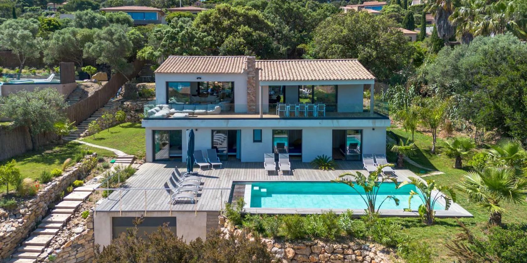 Boasting pool views, Villa 5 Etoiles vue sur les Iles d'Or Carqueiranne Sea and Mountain Pleasure Villa Vue Mer La Californie features accommodation with a private beach area, pool with a view and a...