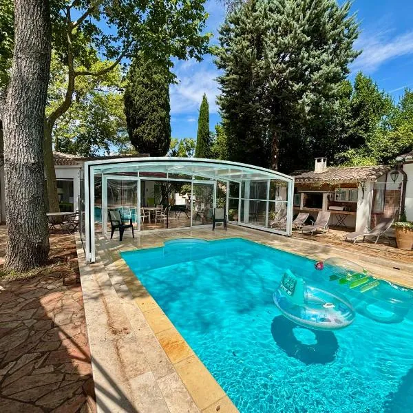 Το le mas du cypres, 12 pers et piscine παρέχει δωρεάν WiFi, κλιματισμό, εποχική εξωτερική πισίνα και κήπο.