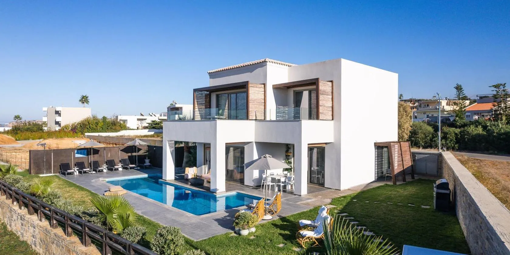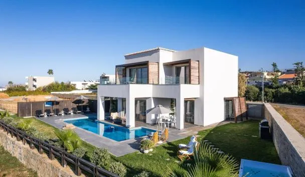 Featuring a balcony with mountain views, a seasonal outdoor swimming pool and a garden, Stavromenos Villas - Private Pools & Seaview - 500m from Beach can be found in Stavromenos, close to Skaleta...