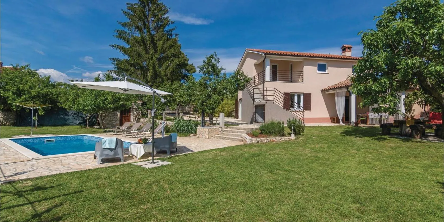 Το Three Bedroom Villa with Swimming Pool, που προσφέρει δωρεάν WiFi, κλιματισμό, κήπο και βεράντα, βρίσκεται σε Labin.
