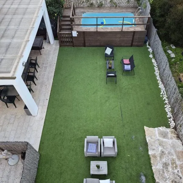 חופשה חלומית is gelegen in Caesarea en heeft accommodatie en een privézwembad, uitzicht op de tuin en een balkon.