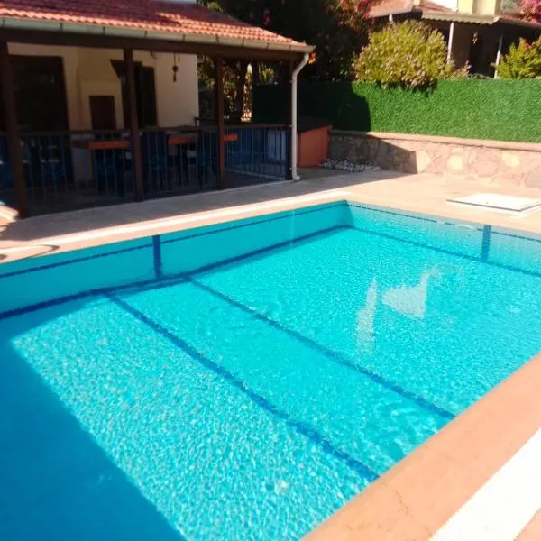 Villa Deniz ligt in de wijk Hisaronu in Fethiye, op slechts 11 km van jachthaven Ece Saray, en heeft een buitenzwembad, een tuin, een privéstrand en een terras.